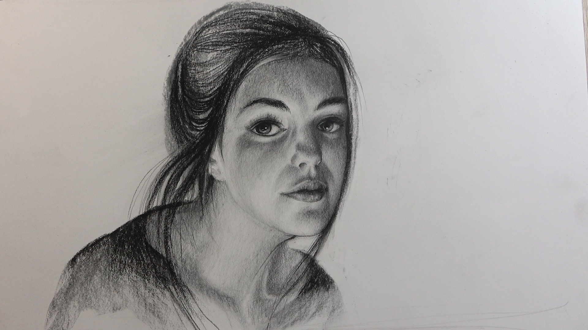 연필과 목탄을 같이 사용해서 그린 그림입니다. 이번 그림의 주제는 아래쪽에서 밝은 빛이 비추는 느낌의 드로잉 입니다.